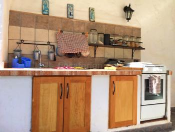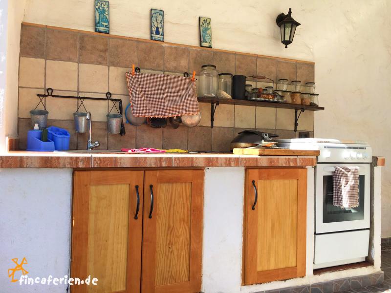 Dieses Ferienhaus nahe Las Puntas verläuft ebenerdig und hat eine Wohnfläche von ca. 96 qm. Das helle Landhaus wurde in den 80er Jahren erbaut und seitdem mehrfach renoviert. Es ist vorwiegend im spanischen Stil möbliert und bietet Platz für maximal 4 Personen.Das Herz des Ferienhauses bildet eine geräumige und gut ausgestattete Wohnküche mit Kamin. Von hier gelangt man rechts zum Badezimmer mit Dusche und zum Schlafzimmer mit zwei Einzelbetten. Hinter der Küche befindet sich ein kleines Fernsehzimmer mit Couch, Flachbild-TV und Meerblick sowie das Hauptschlafzimmer mit Doppelbett. Ein kleiner Flur führt auf die überdachte Terrasse mit Außenküche, Grill und Essplatz. Vor dem Eingangsbereich erstreckt sich eine weitere Terrasse mit Sitzgelegenheiten.