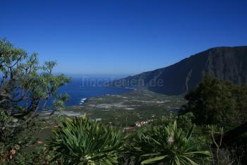 Die Insel El Hierro ist in drei Gemeindegebiete aufgeteilt: Valverde, El Pinar und Frontera. Ihre Ferienwohnung befindet sich in der Ortschaft Las Puntas, die zur Gemeinde Frontera gehört und im fruchtbaren Valle El Golfo liegt. Die Landschaft ist geprägt durch Obstplantagen und Weinanbaugebiete. In Las Puntas befindet sich das kleinste Hotel der Welt mit nur 4 Doppelzimmern. Es steht auf einem Felsplateau am Hafen und wurde aus einem ehemaligen Lagerhaus umgebaut. Von hier hat man einen fantastischen Blick auf die Atlantikküste und die Roques de Salmor.