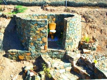 Und über allem thront dann noch ein kleiner Turm mit Toilette, von dem man eine traumhafte Aussicht über die gesamte Finca und das Meer hat. Für die kühleren Wintertage gibt es ein kleines, überdachtes Duschbad mit einer zweiten Toilette.