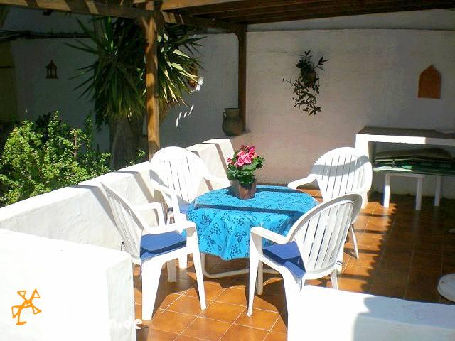 Das private Studio am Ortsrand von Aldea befindet sich im Obergeschoss eines zweistöckigen Wohnhauses und verfügt über einen separaten Eingang. Es hat eine Wohnfläche von ca. 45 m² und ist mit hellen Holzmöbeln eingerichtet. Der Wohn- und Schlafbereich ist mit einem großen Doppelbett, einem kleinen Sofa, einem Essplatz und Sat-TV ausgestattet. Hinzu kommen eine Küchenzeile und ein Duschbad. Außerdem können die Gäste eine Frühstücksterrasse und eine weitere Terrasse in Richtung Garten nutzen, sowie zwei Sonnenliegen innerhalb des Gartens.
