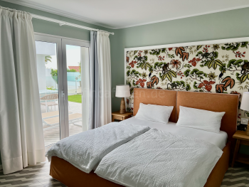 Der große Pool, die weitläufige Liegewiese und der gepflegte Palmengarten wird von den Gästen beider Ferienhäuser genutzt. Es gibt aber genug Rückzugsmöglichkeiten auf dem großen Grundstück. Eine deutsche Hausverwaltung vor Ort kümmert sich um die Gäste und ist dabei nicht aufdringlich.