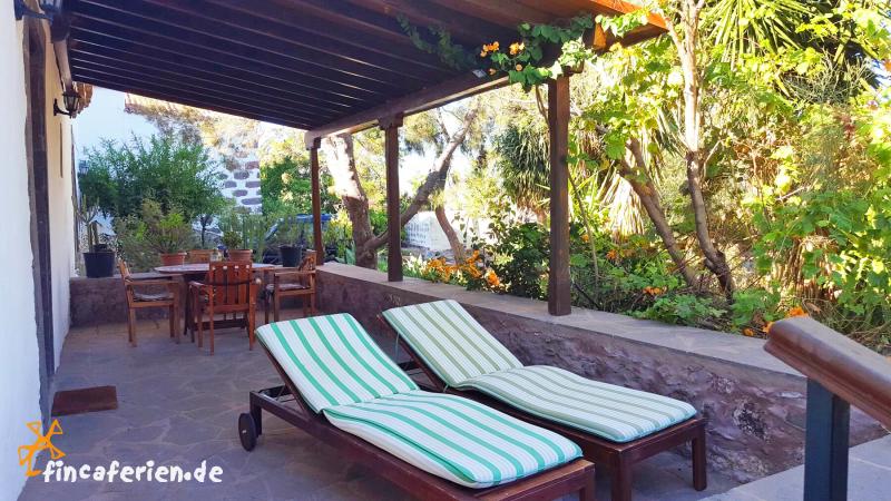 Die ca. 110 m² große Finca wurde 2001 restauriert ohne den typisch kanarischen Stil, der die Schönheit dieser Häuser ausmacht, zu verlieren. So ist sowohl die Fassade als auch die Innenausstattung traditionell gehalten. Dabei müssen Sie aber in keiner Weise auf Wohnkomfort verzichten. Ganz im Gegenteil: ausgestattet mit SAT-TV haben Sie auch die Möglichkeit sich einen bequemen Fernsehabend mit deutschen Sendern zu gestalten. Außerdem gibt es einen Internetzugang per W-LAN.Direkt vor der Finca befindet sich eine große Terrasse mit Grillmöglichkeit, die umgeben ist von einem liebevoll bepflanzten Garten mit einheimischen Pflanzen, Palmen, Obstbäumen sowie Kakteen. Genießen Sie den wundervollen Blick auf die Berge oder beenden Sie den Tag mit einem gemütlichen Barbecue.