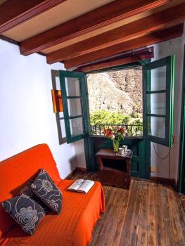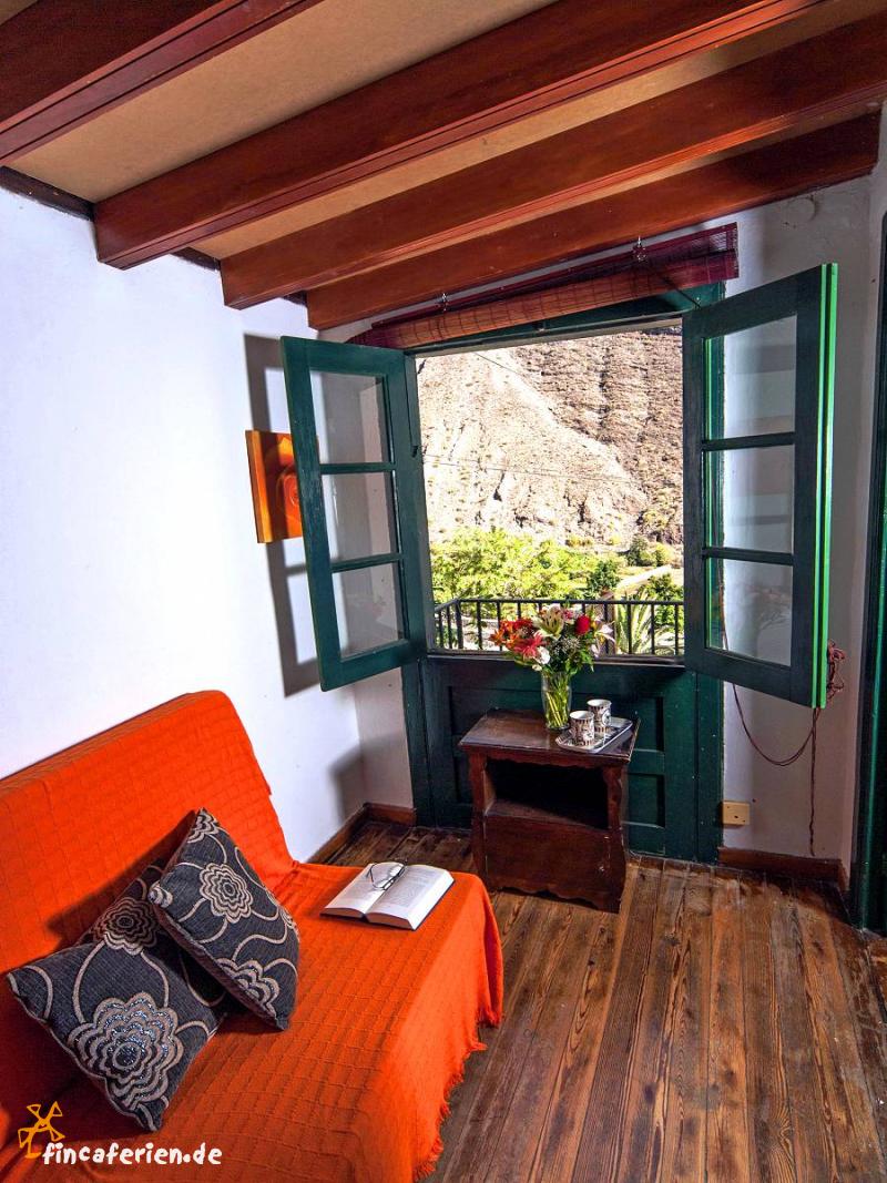 Das strandnahe Ferienhaus in La Calera (Valle Gran Rey) verläuft über 3 Etagen und hat eine Wohnfläche von ca. 140 qm. Es bietet ausreichend Platz und Schlafmöglichkeiten für maximal 10 Erwachsene und 2 kleine Kinder bis zu 3 Jahren. Das typisch kanarische Stadthaus stammt aus dem 19.Jahrhundert und wurde in den letzten Jahren renoviert. Hierbei wurden viele traditionelle Elemente wie Holzdecken, Holzfußböden und Natursteinmauern erhalten.Im Erdgeschoss des kanarischen Stadthauses liegen ein Studio mit Küchenzeile und ein Apartment, das auch separat angemietet werden kann. Dieses bietet einen Wohnbereich mit kleiner Küchenzeile, ein Duschbad, ein Schlafzimmer und eine möblierte Terrasse. Im 1.Obergeschoss befinden sich ein Schlafzimmer, ein Badezimmer, die Küche und das Wohnzimmer. Zum 2.Obergeschoss gehören das Hauptschlafzimmer mit angrenzendem kleinen Schlafzimmer, in dem ein Sofabett steht und ideal wäre für ein jüngeres Kind. Die große möblierte Sonnenterrasse mit fantastischem Meerblick erreicht man ebenfalls über dieses Stockwerk.