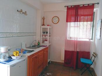 - Küchenzeile mit 2-Platten-Cerankochfeld, Kühlschrank, Kaffeemaschine und Wasserkocher