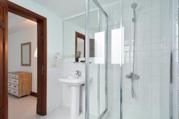 Das Ferienhaus in erster Linie zum Meer hat eine Wohnfläche von ca. 100 qm, die sich über zwei Etagen erstreckt. Das Ferienhaus in Puerto Calero ist modern eingerichtet und gut geeignet für bis zu 6 Personen. Auf Anfrage werden ein Babybett und ein Hochstuhl kostenlos zur Verfügung gestellt. An Komfort bietet das Ferienhaus am Meer Sat-TV, DVD-Player, Mikrowelle, Waschmaschine, Geschirrspüler, Internetzugang per W-LAN und Klimaanlage.Im Erdgeschoss liegen ein Schlafzimmer mit Bad en Suite, die gut ausgestattete Küche und das Wohnzimmer mit Essplatz. Von hier führt eine Wendeltreppe in das Obergeschoss. Hier befinden sich ein Schlafzimmer mit Bad en Suite und privatem Balkon sowie ein weiteres Schlafzimmer und das dritte Bad.