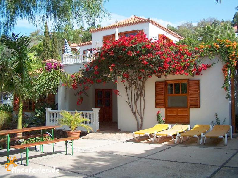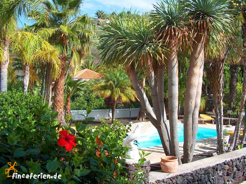 In einer Ferienanlage, etwa 300 m über dem Meeresspiegel gelegen, mitten in einem herrlichen tropischen Garten, befinden sich diese Ferienwohnung für 2 Personen. Das Grundstück in Hanglage ist etwa 11 000 m² groß und sehr weitläufig. Man muss schon sehr genau hinsehen, um die einzelnen Urlaubsdomizile im Garten zwischen den Palmen und Bäumen zu finden. Die kleine Ferienwohnung mit separatem Eingang liegt in der oberen Etage einer kanarischen Villa.Auf dem weitläufigen Grundstück liegen noch versteckt drei kleine Ferienhäuser (OBN 834.4), ein Apartmenthaus (OBN 834.1) und zwei größere Ferienhäuser (OBN 834.3).