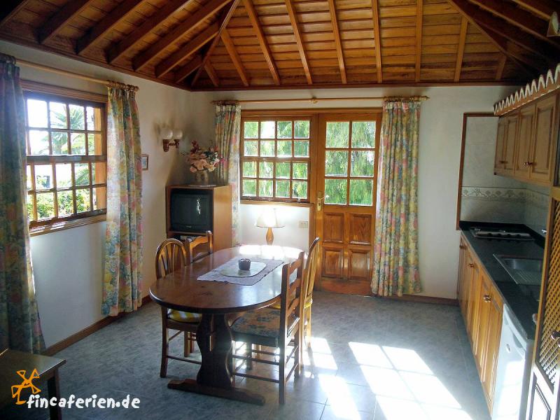 Die kleine Ferienwohnung im Obergeschoss der kanarischen Villa hat eine Wohnfläche von ca. 48 m² und ist für 2 Personen geeignet. Sie ist wohnlich und gemütlich eingerichtet, was besonders durch die kanarische Holzdecke im Wohnraum zum Ausdruck kommt. Von der sonnigen und möblierten Dachterrasse genießt man einen traumhaften Panoramablick auf die Berge und den Atlantik.Der kleine Pool im Garten, umgeben von Palmen und vielen anderen exotischen Pflanzen, befindet sich im unteren Teil der Ferienanlage und kann von allen Gästen genutzt werden.