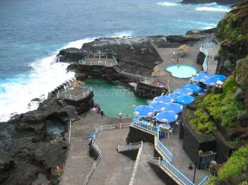 Wenige Kilometer nördlich von San Andres befindet sich das Meerwasserschwimmbad Charco Azul. Zwischen schroffen Felsen liegen die von Wellenbrechern geschützten Schwimmbecken. Es gibt Umkleidekabinen und Duschen. Die Liegeflächen auf dem Lavagestein sind etwas unbequem, dicke Handtücher oder Decken sind von Vorteil. Der Eintritt ist frei.
