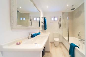 Die großzügige Villa bei Costa de Canyamel ist in einem hellen, modernen und unaufdringlichen Stil eingerichtet. Die Gesamtwohnfläche von ca. 450 m² verteilt sich auf zwei Etagen plus der großen Terrassen im Außenbereich.Durch die nicht überladende Einrichtung kommen besondere Einzelstücke wie ein alter Schreibpult, ein kleines Schränkchen, ein besonderer Hocker oder ein knallrotes Sofa sehr gut zur Geltung.