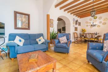 Die mallorquine Finca in ruhiger Lage auf dem Land verläuft über zwei Etagen und hat eine Wohnfläche von ca. 120 qm. Sie ist vorwiegend im spanischen Stil eingerichtet worden und ist für 6 Personen geeignet. Im Erdgeschoss liegen zwei Schlafzimmer, ein Bad, das Wohn- und Esszimmer sowie die traditionelle Küche mit Kamin, Gasherd und Geschirrspüler. Im Obergeschoss befindet sich ein Duschbad, das dritte Schlafzimmer und ein kleines, gemütliches Lesezimmer.Der Naturgarten mit freilaufenden Hühnern und schattenspendenden Bäumen machen den Außenbereich abwechslungsreich und anziehend. Er bietet Eltern und Kindern viel Platz zum Spielen, Relaxen und zum Genießen des gemütlichen Beisammenseins. Es gibt eine Terrasse mit Essplatz, einen Grill und eine Sonnenterrasse mit Liegen. Das Außenduschbad ist ideal, um sich nach dem Schwimmen im Pool oder einem Strandbesuch direkt abduschen zu können.