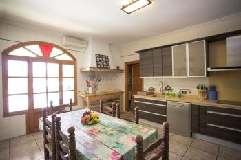 Das große Ferienhaus am Stadtrand von Alcudia hat eine Wohnfläche von ca. 255 qm, die sich auf zwei Wohnebenen verteilen. Die Einrichtung ist hell und vorwiegend im spanischen Stil gehalten. In der unteren Etage befinden sich das klimatisierte Wohnzimmer mit Sat-TV, die moderne Küche, ein Schlafzimmer (mit Klimaanlage) und ein Badezimmer. Küche und Wohnzimmer haben einen Ausgang zur überdachten Terrasse, die in den Garten und zum Pool führt. Über eine Treppe gelangt man in die obere Etage mit drei weiteren Schlafzimmern (alle mit Klimaanlage) und einem Badezimmer.Eine große überdachte und möblierte Terrasse befindet sich im Eingangsbereichs des Ferienhauses und eine weitere Terrasse mit gemauertem Grill liegt im hinteren Bereich. Von hier hat man einen schönen Blick in den Garten mit Rasenfläche sowie zum großen Pool mit Sonnenterrasse.
