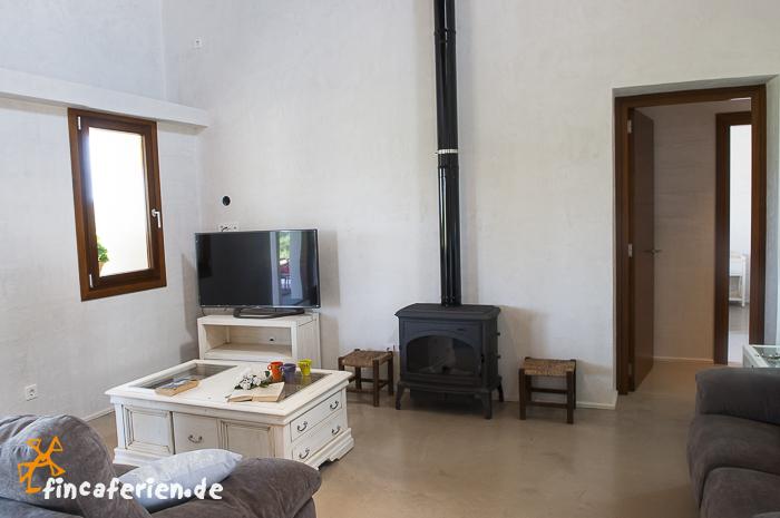 - Wohn - und Esszimmer mit Couchgarnitur, Essplatz und Kaminofen