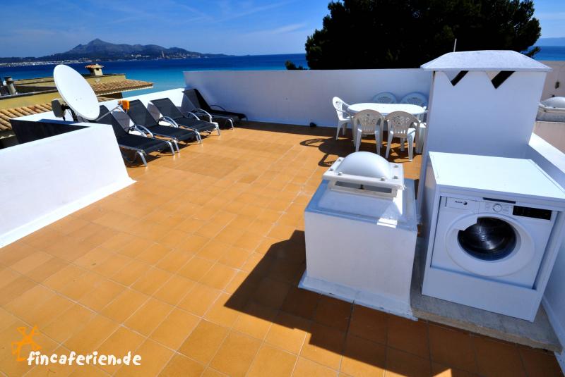 Diese klimatisierte Ferienwohnung für 5- 6 Personen liegt im Norden von Mallorca, in einem Wohngebiet am Strand von Alcudia, nicht weit entfernt von Puerto Alcudia und dem beliebten Urlaubsort Ca'n Picafort. Sie befindet sich im Obergeschoss eines zweigeschossigen Wohnhauses und verfügt über einen schönen Balkon und eine private Dachterrasse mit Grill und Meerblick. Die Ferienwohnung liegt direkt am etwa 11 km langen, flach abfallenden Sandstrand von Alcudia und ist ideal für einen Strandurlaub mit Kindern.In der näheren Umgebung gibt es Lebensmittelgeschäfte, Boutiquen, Restaurants, Cafes und eine Apotheke. Puerto de Alcudia ist ebenfalls nicht weit entfernt und lädt mit seiner 2 km langen Strandpromenade zum Verweilen ein. Bis zur strandnahen Ferienwohnung sind es vom Flughafen nahe der Hauptstadt Palma de Mallorca ungefähr 65 Kilometer.