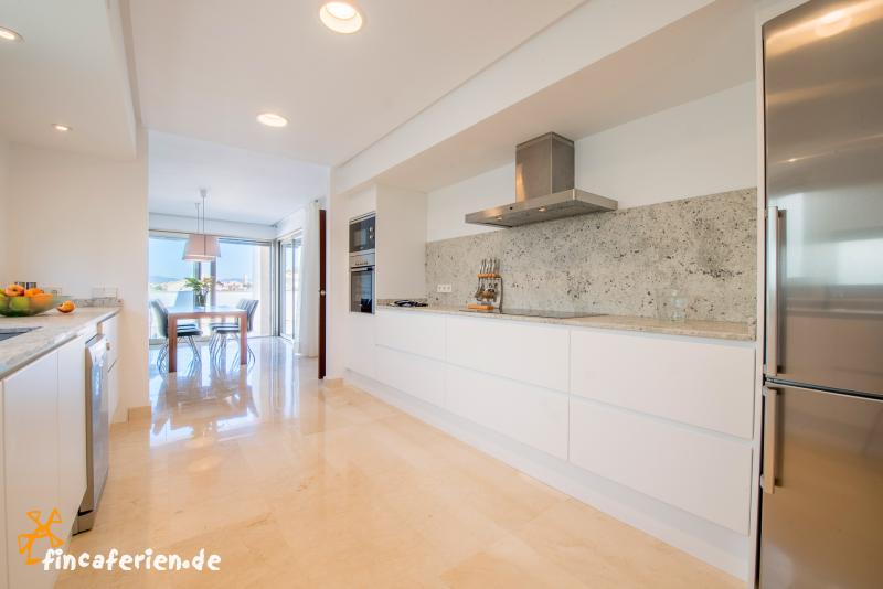 - offene Küche mit Ceranfeld, Backofen, Kühl-/Gefrierkombination, Geschirrspüler, Mikrowelle, Kaffeemaschine etc