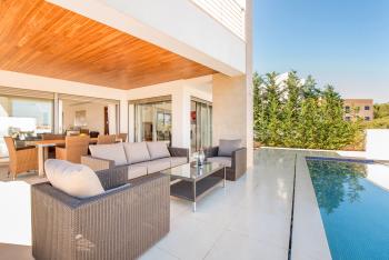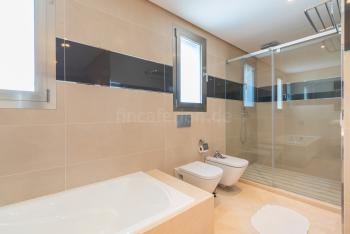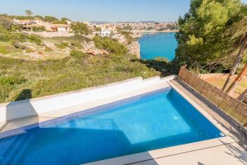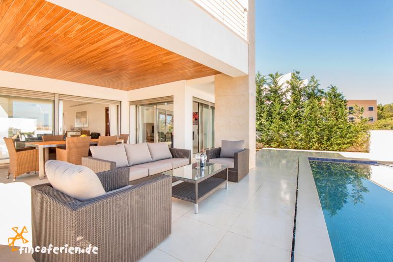 Diese moderne Villa in Porto Cristo verläuft über 3 Etagen, hat eine Wohnfläche von ca. 400 qm und bietet somit viel Platz für 8 Personen. Die hellen Wohn- und Schlafräume sind geschmackvoll und komfortabel möbliert. Den Gästen stehen in der Villa vier Schlafzimmer mit Bad en Suite, ein Gäste WC, eine Einbauküche, ein Esszimmer, ein Wohnzimmer sowie ein Hauswirtschaftsraum zur Verfügung.Durch große Schiebelemente gelangt man sowohl vom Wohnzimmer als auch vom Esszimmer auf die überdachte Terrasse am Pool. Gemütliche Korbmöbel laden hier zum Lesen oder Relaxen ein und es steht ein Gasgrill bereit, um ein Barbecue im Kreis der Familie oder mit Freunden zu genießen. Für eine Abkühlung an heißen Sommertagen sorgt der Pool oder man nutzt die Außendusche, welche im Poolbereich ebenfalls vorhanden.