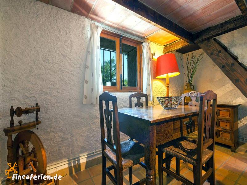 Die alleinstehende komfortable Finca, im typisch mallorquinen Stil aus Naturstein gebaut, hat eine Wohnfläche von ca. 70 qm und ist für 4 Personen geeignet. Die Finca ist vorwiegend mit spanischen Möbeln eingerichtet und spiegelt durch zalreiche individuelle Details einen gemütlichen Charme früherer Zeiten wider. Für einen angenehmen Urlaub bietet sie unter anderem Waschmaschine, Geschirrspüler, Internetzugang per W-LAN und eine Klimaanlage im Wohn- und Esszimmer sowie im Schlafzimmer.Im Erdgeschoss liegen die gut ausgestattete Küche, das Doppelschlafzimmer, das Duschbad sowie das Wohn- und Esszimmer. Von hier führt eine Holztreppe hinauf zur Schlafempore mit 2 Einzelbetten.