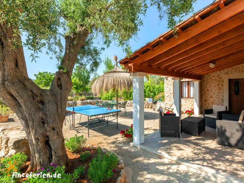 Besonders schön angelegt ist der Außenbereich der Finca, der mit mediterranem Garten, großzügigen Terrassenflächen (ca. 150 qm) sowie einem Pool mit angrenzendem Whirlpool zum Entspannen einlädt. Zur sportlichen Betätigung steht außerdem eine Tischtennisplatte zur Verfügung.