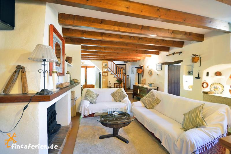 Die gepflegte Finca im mallorquinen Stil verläuft über zwei Stockwerke und hat eine Wohnfläche von ca. 100 qm. Im Erdgeschoss liegen die Küche mit Waschmaschine und Geschirrspüler, beide Badezimmer sowie das Wohn- und Esszimmer mit Holzofen und Sat-TV. Alle drei Schlafzimmer haben eine Klimaanlage und befinden sich im Obergeschoss. Im gesamten Wohnbereich der Finca kann (ab April 2016) ein Internetzugang per W-LAN genutzt werden.