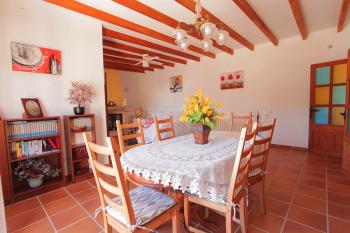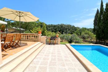 Im Wohn- und Esszimmer mit Terrakotta-Fliesen, Holzbalkendecke und gemütlicher Sitzgruppe erleben Sie die typisch mallorquinische Bauweise mit warmen Farben und Holzelementen. Die traditionelle Kaminecke lädt zum Verweilen ein, während der moderne SAT-TV und WLAN für zeitgemäße Unterhaltung sorgen. Die voll ausgestattete Küche mit Geschirrspüler und Waschmaschine bietet beste Voraussetzungen für kulinarische Genüsse mit frischen Produkten vom Artaer Wochenmarkt.Die drei Schlafzimmer für bis zu 6 Erwachsene und die modernen Badezimmer bieten erholsamen Schlaf in angenehmer Atmosphäre. Für Familien mit Kleinkindern stehen 2 Babybetten und ein Hochstuhl kostenlos zur Verfügung.