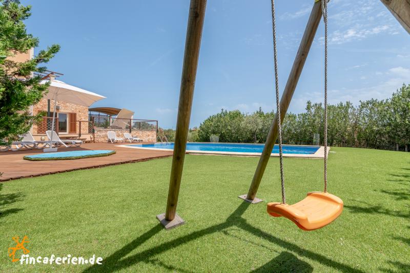 Dieses Ferienhaus mit großem Pool befindet sich auf einem kleinen Hügel, weniger als 1 km von Portocolom entfernt, im Südosten der Insel. Das Ferienhaus steht auf einem knapp 15.000 qm großen Grundstück in Meernähe und eine unbefestigte Straße führt bis zum Parkplatz auf der Rückseite des Gebäudes.Schnell erreicht man den Ortskern von Portocolom mit verschiedenen Restaurants, kleinen Geschäften und einem Supermarkt sowie den Sandstrand S’Arenal (ca. 1 km). Die kleine Bucht Cala Marcal liegt ca. 2 km entfernt und bis zu weiteren kleinen Buchten im Umkreis sind es weniger als 15-Autominuten. Der Wochenmarkt findet in Portocolom immer am Samstag statt. Hier kann man am Vormittag an zahlreichen Verkaufsständen neben frischem Obst und Gemüse auch Haushaltswaren, Kleidung, Souvenirs oder Kunstgegenstände erwerben. Zwischen dem Flughafen nahe der Hauptstadt Palma de Mallorca und dem Ferienhaus liegen ungefähr 60 km.