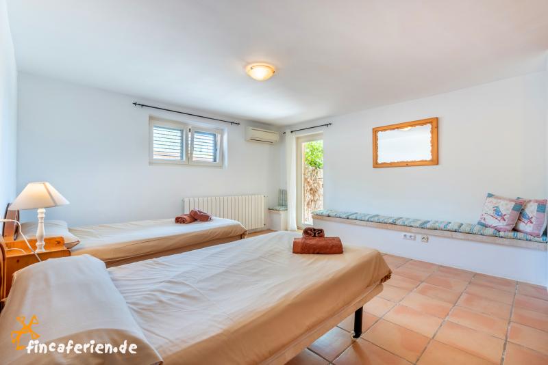 Dieses großzügige Ferienhaus bei Portocolom bietet ideale Bedingungen für einen erholsamen Urlaub in Strand- und Meernähe. Das Ferienhaus hat eine Wohn-und Nutzfläche von ca. 280 qm, die sich über drei Wohnebenen erstreckt und ist für 6 Personen geeignet. Zur komfortablen Ausstattung gehören Waschmaschine, Geschirrspüler, Sat-TV, Internet W-LAN und Klimaanlage. Sollte es an den Abenden doch einmal zu kalt werden, kann die vorhandene Heizung genutzt werden oder man macht es sich im Wohnzimmer am schmiedeeisernen Kamin gemütlich.Im Erdgeschoss befinden sich neben dem Wohn- und Esszimmer auch die Küche und ein Gäste WC. Im Obergeschoss liegen zwei Schlafzimmer, eins davon mit privatem Balkon, die sich ein Badezimmer teilen. Das dritte Schlafzimmer mit zwei Einzelbetten und Duschbad en Suite befindet sich im Untergeschoss.