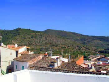 Das ca. 300 Jahre alte Natursteinhaus liegt in Hanglage am oberen Ortsrand des alten, malerischen Dorfes arabischen Ursprungs Chovar in der Provinz Castellon im Osten Spaniens an der Costa Azahar. In einer sehr ruhigen, winkligen Gasse ohne Durchgangsverkehr steht dieses Haus in einer Häuserzeile oberhalb des Kirchplatzes, der auch als Parkplatz genutzt werden kann.Von der nicht einsehbaren Dachterrasse hat man einen wunderbaren Blick (360°) auf die Dächer von Chovar, Gemüsegärtchen und die mit Mandel- u. Olivenbäumen bepflanzten Berge der Sierra de Espadan (Naturschutzgebiet).
