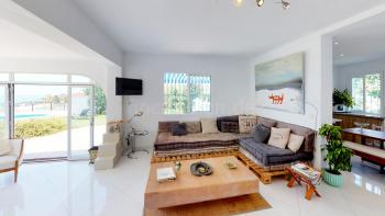 Auf den großzügigen Rasenflächen und natürlich am Pool mit herrlichem Meerblick lässt sich die Sonne genießen.