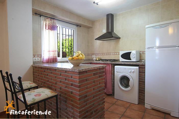 Das gemütliche Wohnzimmer mit der offenen Küche befindet sich im Erdgeschoss. Es ist komfortabel eingerichtet und lädt mit Kamin und SAT-TV, auch in der kühleren Jahreszeit, zum abendlichen Verweilen ein. Die Küche ist mit einem großen Kühlschrank mit Gefrierfach ausgestattet. Vom Wohnzimmer aus haben Sie einen direkten Zugang zu einem der Schlafzimmer. Das zweite Schlafzimmer, mit Doppelbett, erreichen Sie über die Treppe. Dieses Schlafzimmer und das Wohnzimmer sind mit einer Klimaanlage ausgestattet.Auf der Vorderseite, umgeben von Orangenbäumen, von denen die Gäste sich für den Eigenbedarf bedienen dürfen, liegt eine geräumige, überdachte Terrasse mit einer wunderbaren Aussicht auf das Dorf Alozaina und eine Kirche, die abends beleuchtet ist.